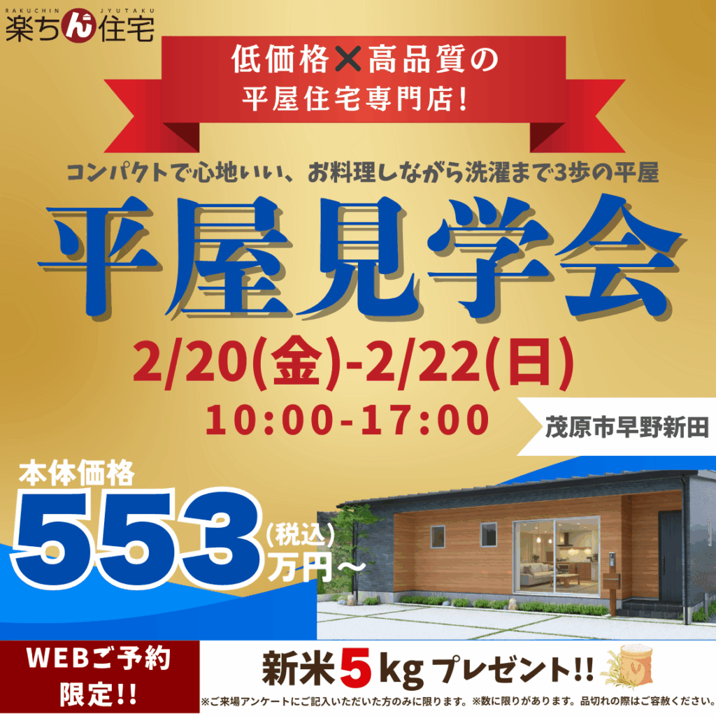 2026.02.04【2/7(土)~2/8(日)】🍳茂原市早野新田|家事がつながる25坪平屋 見学会開催!