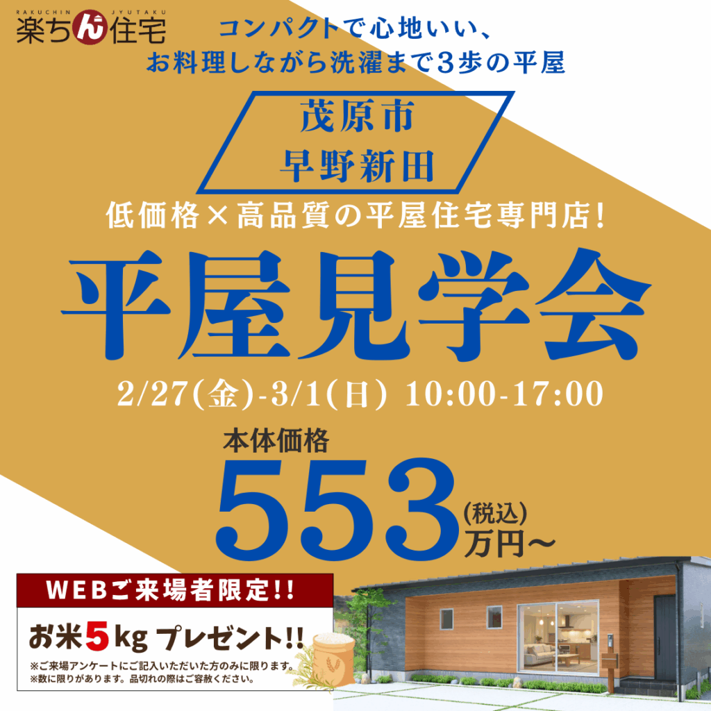 2026.02.17【2/21(土)~2/23(月・祝)】🏠コンパクト派?ゆとり派?✨平屋見比べ見学会 in 茂原市ゆたか🎉