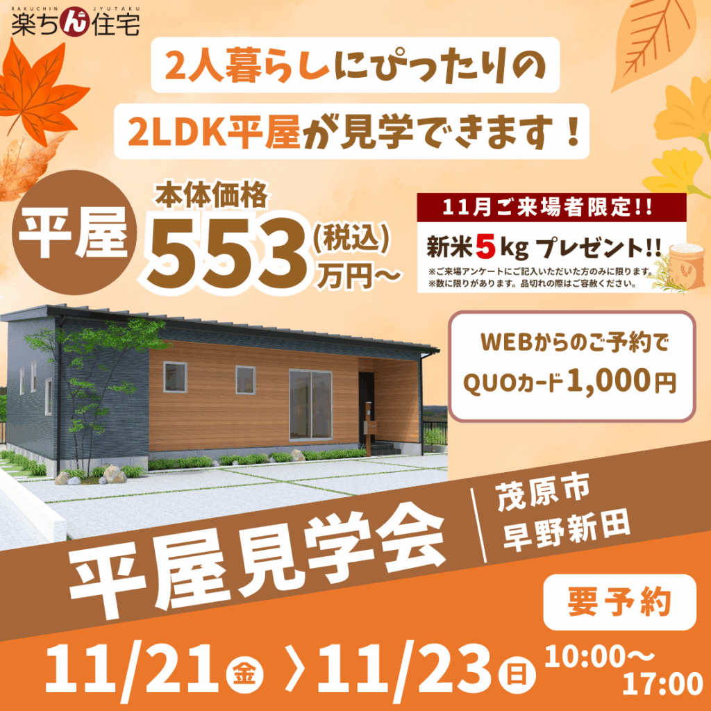 【11/21(金)~11/23(日)】🌿暮らしやすさを実感!茂原市早野新田 平屋見学チャンス💛