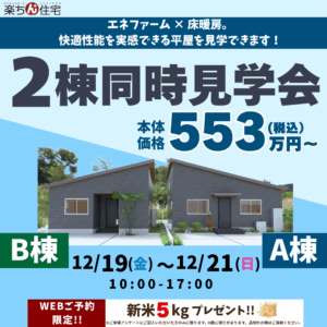 【12/19(金)~12/21(日)】床暖房で冬も快適!エネファーム搭載の平屋を2棟同時公開✨