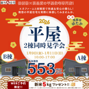 【1/9(金)~1/11(日)】床暖房で冬も快適!エネファーム搭載の平屋を2棟同時公開✨