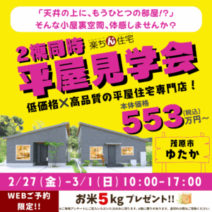 【2/27(金)~3/1(日)】✨天井の上にもうひとつの部屋!? 茂原市ゆたか|平屋2棟同時見学会🏠