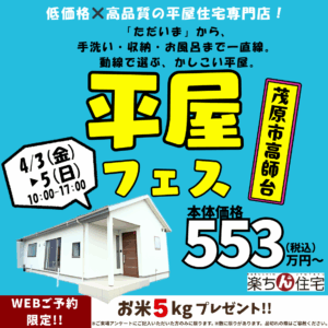 茂原市高師台にて、楽ちん住宅の平屋フェスタを開催します🏡✨