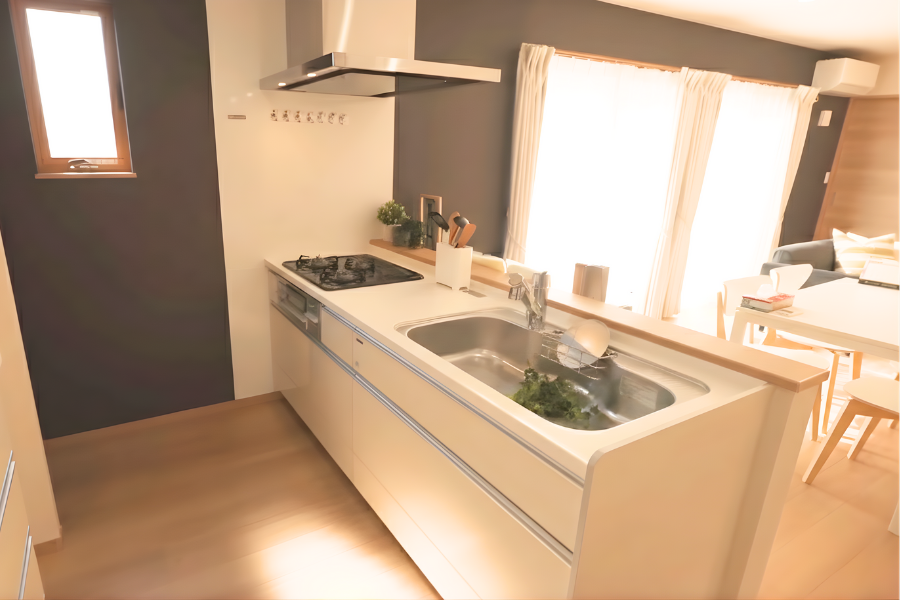 ✅ 家族と会話が弾む、壁のないフルオープンキッチン