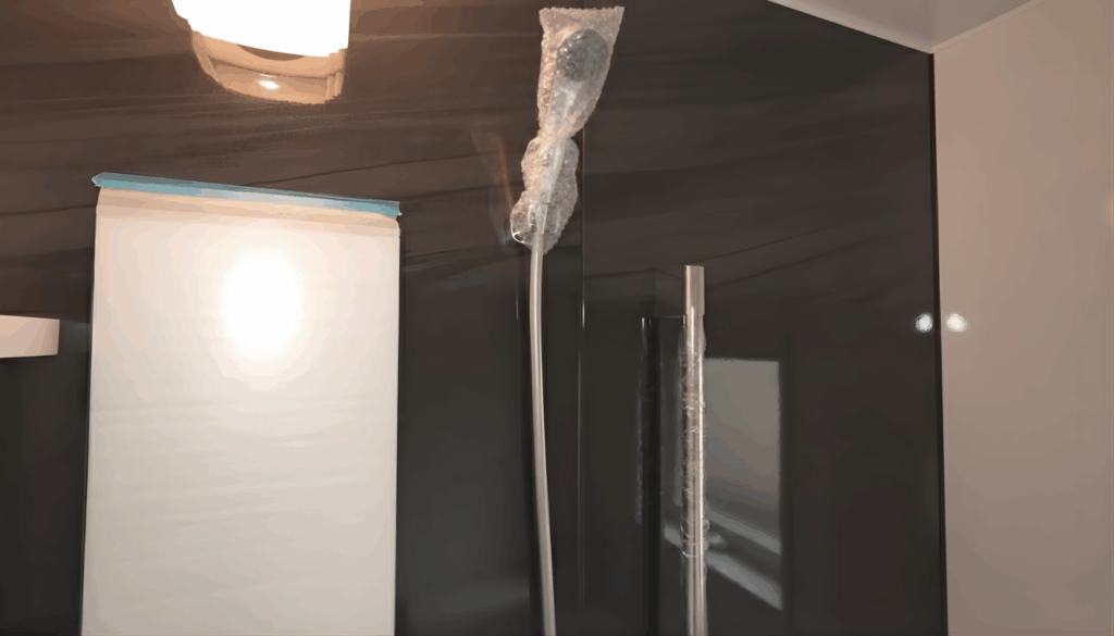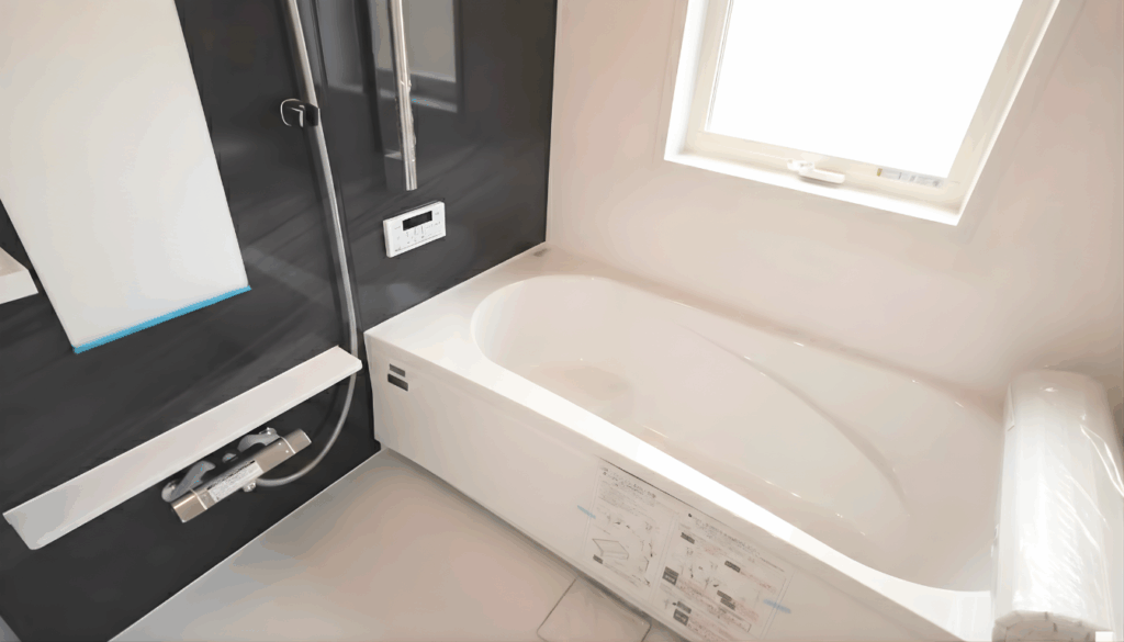 ✅ 白基調で統一された内装+ブラックアクセントのお風呂で高級感アップ