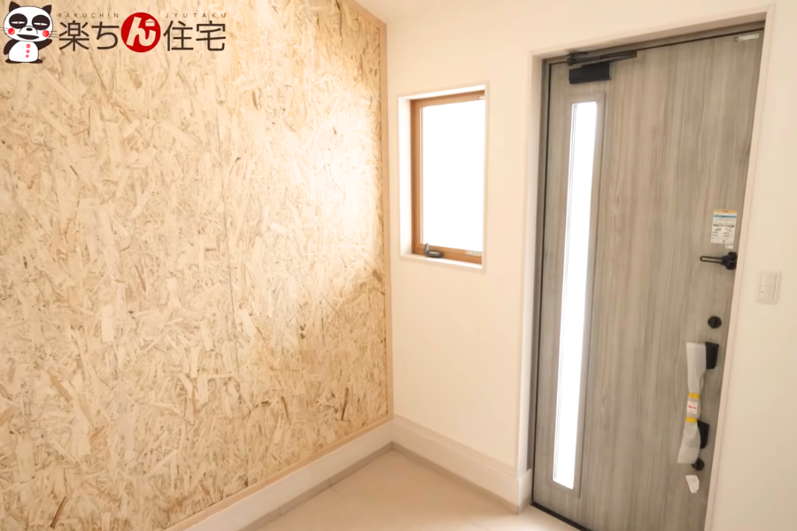 ✅ OSBボードでDIYも楽しめる、おしゃれな玄関アクセント